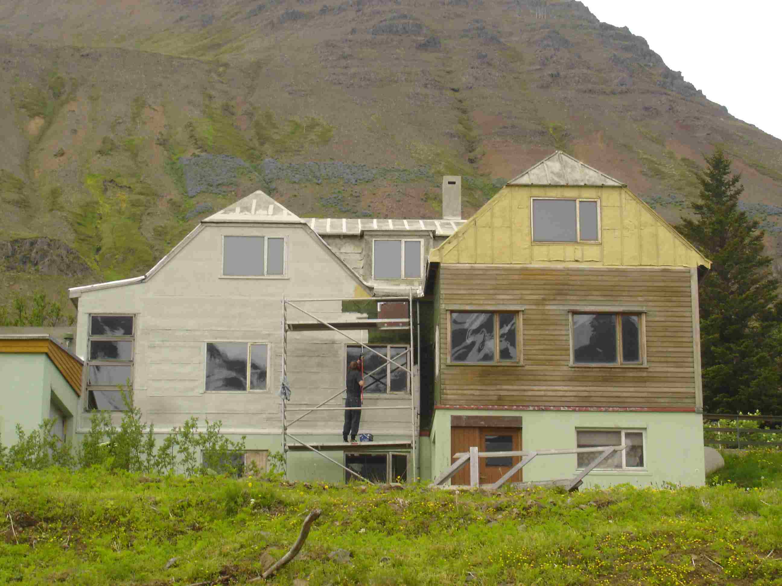 Húsið fær nýja umferð af málningu og kemur það til með að breyta ásýnd hússins töluvert.