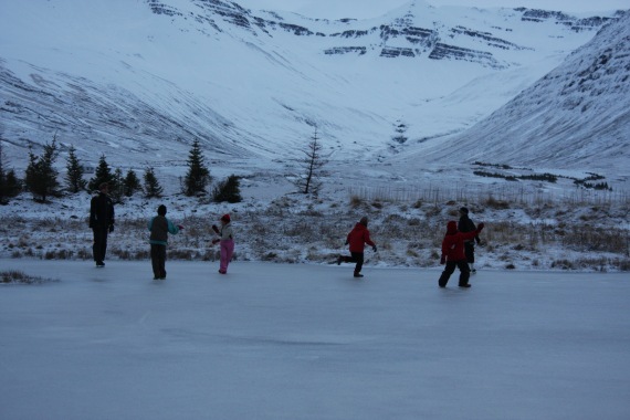 Ţađ er ekki á hverjum degi sem mađur sér skautafólk á Siglufirđi en í gćr mátti sjá Tóta og hóp annarra krakka leika sér á svellinu viđ Langeyrarveg.