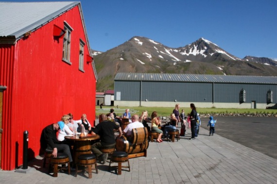 Fjölmargir nutu góðra veitinga við höfnina