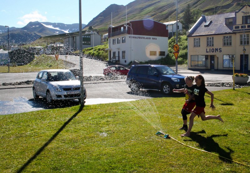 Eftir nokkra vætutíð og kulda var sólin boðin velkomin til Siglufjarðar.