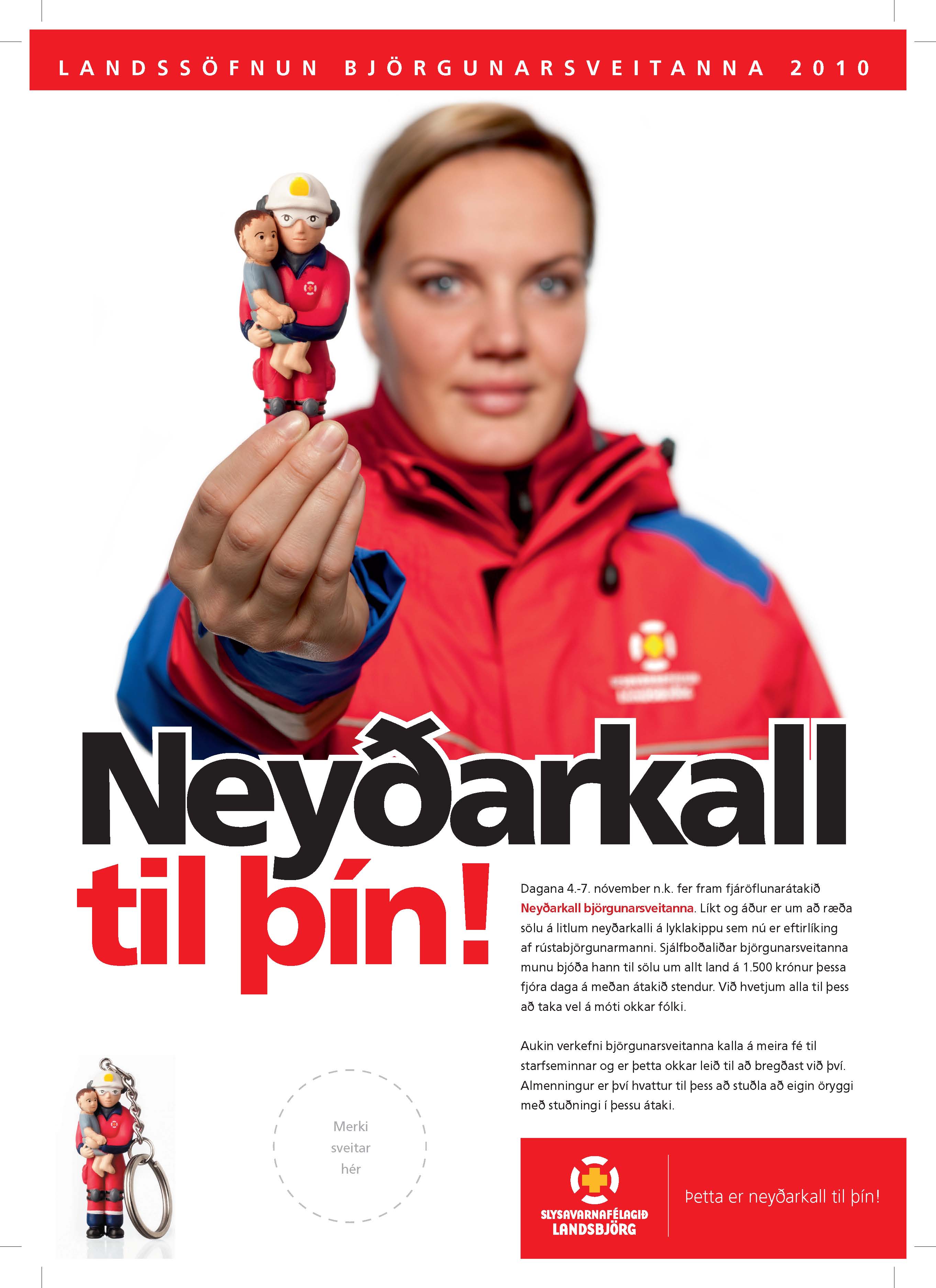 Árleg fjáröflun björgunarsveitarinnar fer fram í dag með sölu á Neyðarkallinum, sem að þessu sinni er lyklakippa í eftirmynd rústabjörgunarmanns. Unglingadeildin Smástrákar munu ganga í hús í kvöld frá klukkan 19:00 og selja gaurinn sem kostar aðeins 1.500kr.