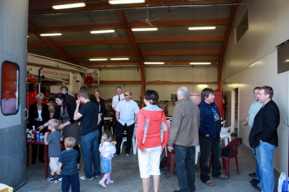 Fjöldi manns mætti til að samgleðjast slökkviliðinu þar sem pylsum var smellt á grillið og yngri kynslóðin fékk að leika sér í slökkvistöðinni meðan sú eldri fékk kaldan með pylsunni.