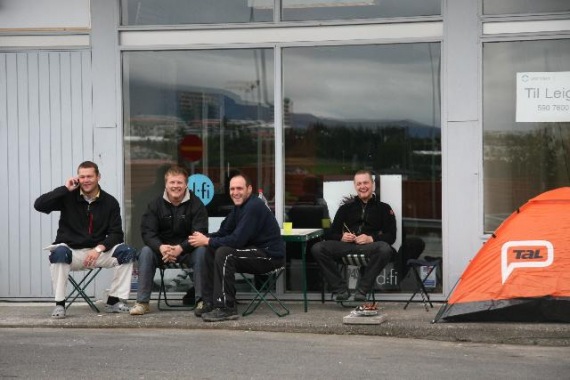 Hópur manna hafði safnast saman og beðið utan við klippibúlluna allt frá því kvöldið áður með von um að vera fyrstir til að ná sér í klippingu hjá mótorhjólatöffaranum Hrólfi.