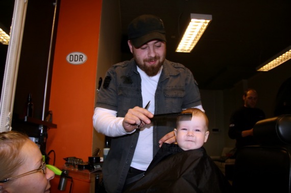 Emma Hrólfdís, dóttir Hrólfs og Ólafar, varð þó að sjálfsögðu fyrst í stólinn hjá Hrólfi og var það í boði afa Balda sem heimtaði að fá að greiða fyrstu klippinguna. Hinir klippiþyrstu kúnnar sem beðið höfðu í röðum fyrir utan fylgdu síðan í kjölfarið með Magnús Jónsson í fararbroddi.