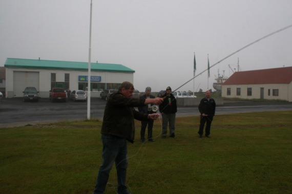 Stangveiðifélag Siglufjarðar var með kynningu á stangveiðibúnaði í verslun Olís og mætti sérfræðingur frá Ellingsen á svæðið og sýndi mönnum réttu handtökin.