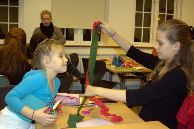 Börn úr 1-6 bekk buðu foreldrum sínum á þetta skemmtilega kvöld þar sem allir hjálpuðust að að gera sem fallegasta skrautið fyrir